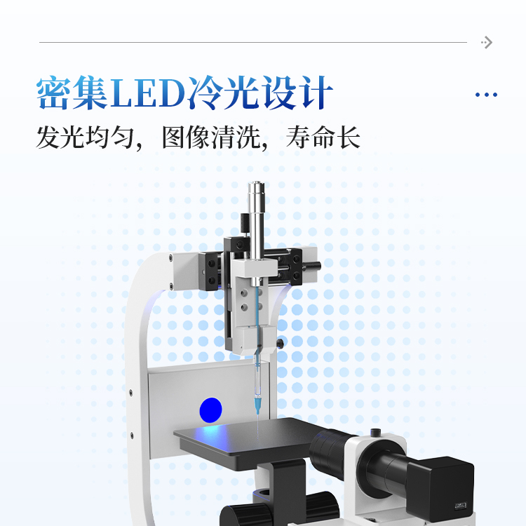 2.采用工业级密集可调LED冷光源系统(寿命25000H以上),保证成像更清晰,同时避免额外热度所导致的小液滴挥发;